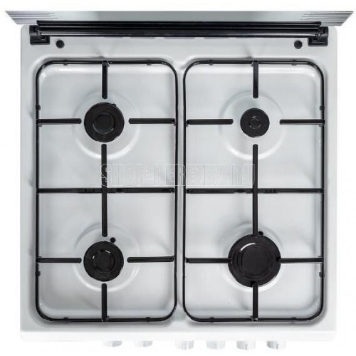 Горелки стола: Газовые – 4 шт. Мощность горелок рабочего стола: Горелка передняя левая/правая – 2,0/2,4 кВт. Горелка задняя левая/правая – 2,0/1,0 кВт. Электрический духовой шкаф. Объем духовки в литрах: 65 л. Верхний/нижний нагреватель духовки – тен.Решетка рабочего стола – сталь. Крышка рабочего стола – стекло. Термометр духовки. Кнопка электророзжига горелок стола. Электрическая подсветка духовки. Противень – 2 шт. Цвет Белый.