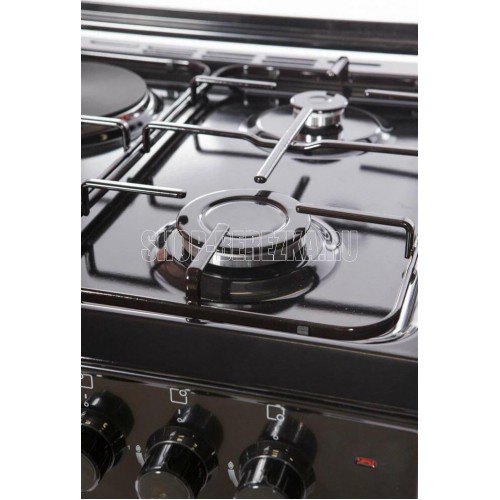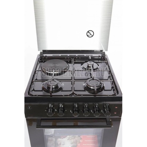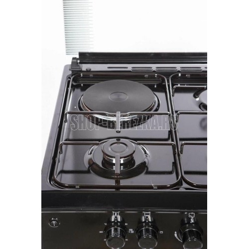Габариты: (ВхГхШ) см 85х60х50. Горелки стола: Газовые 3 шт. Электр. 1 шт. Мощность горелок рабочего стола: -Горелка передняя левая/правая 2,0/2,4 кВт. Горелка задняя левая, электрическая 1,5 кВт. Горелка задняя правая 1,0 кВт. Решетка рабочего стола сталь. Крышка рабочего стола стекло. Верхний нагреватель духовки ТЭН. Нижний нагреватель духовки ТЭН. Электророзжиг при помощи кнопки. Электрическая подсветка духовки. Термостат, Индикатор работы электроконфорки, духовки. Противень 2 шт.