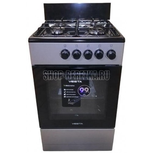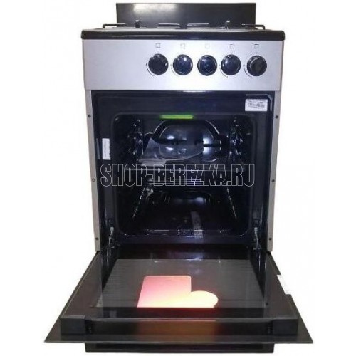 Горелки стола: Газовые – 4 шт.Мощность горелок рабочего стола: -Горелка передняя левая/правая – 2,0/2,4 кВт. -Горелка задняя левая/правая – 2,0/1,0 кВт. -Мощность горелки духовки – 2,5 кВт. Объем духовки в литрах: 65 л. Нижний/верхний нагреватель духовки – газ. Газ-контроль духовки. Решетка рабочего стола – сталь. Щиток. Элементы комфортности: Термометр духовки. Противень – 1 шт. Масса нетто/брутто – 36/40 кг.