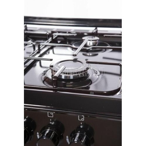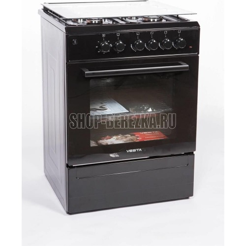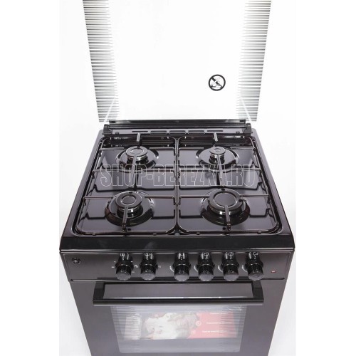 Горелки стола: Газовые – 4 шт. Мощность горелок рабочего стола: Горелка передняя левая/правая – 2,0/2,4 кВт. Горелка задняя левая/правая – 2,0/1,0 кВт. Электрический духовой шкаф. Объем духовки в литрах: 65 л. Верхний/нижний нагреватель духовки – тен.Решетка рабочего стола – сталь. Крышка рабочего стола – стекло. Термометр духовки. Кнопка электророзжига горелок стола. Электрическая подсветка духовки. Противень – 2 шт.