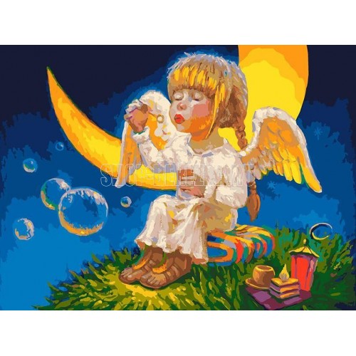 Холст на подрамнике с нанесенным рисунком, контрольный лист с нанесенной схемой, набор акриловых красок, кисти – 4 шт., крепление для готовой картины, пакет с zip-застежкой 23 х 17,5 см