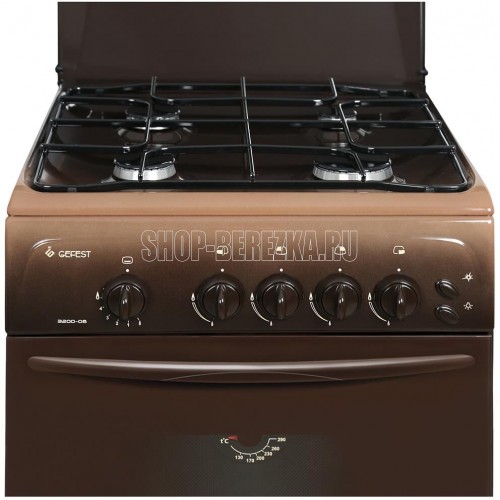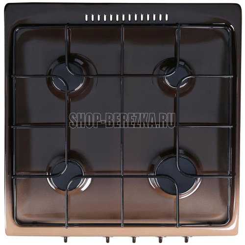 Габариты (ШхГхВ): 50x57x85 см; Полезный объём духовки: 42 л; Цвет: коричневый; Газовые горелки: 4; Электророзжиг горелок стола; Кнопка розжига на панели; Решетки горелок стола стальные; Газ-контроль духовки; Направляющие духовки: штампованные; Термоуказатель; Ящик для посуды и принадлежностей: выдвижной; Крышка стола: металлическая; Варочная поверхность: эмалированная