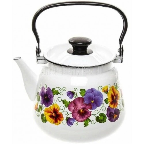43504-132/6 Чайник эмалированный конический с металлической ручкой Высококачественное двухслойное эмалевое покрытие с деколью Деколь: в ассортиментеЦвет эмали: белый Может быть использован на всех типах кухонных плит: электрических, газовых, керамических, индукционных Подходит для мытья в посудомоечной машине Производитель: ООО «Керченский металлургический комплекс»