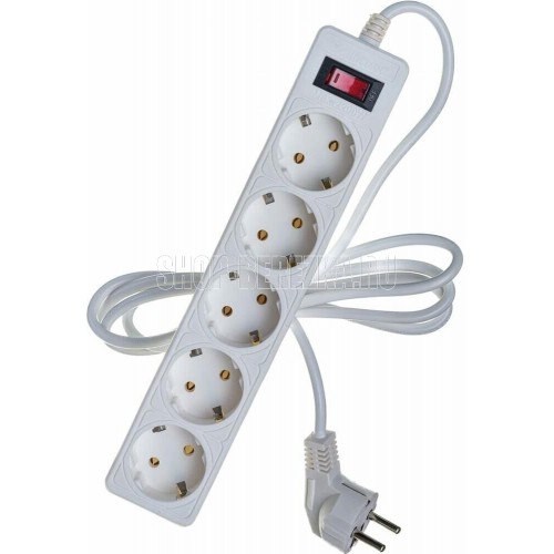 Сетевой фильтр (варистор,терморазмыкатель),1,8м, на 5 гнезд с заземлением, сечения провода - 3*0,75мм2,Медь 100%,Индикатор сети. Номинальный ток 10А, максимальная мощность - 2200Вт.