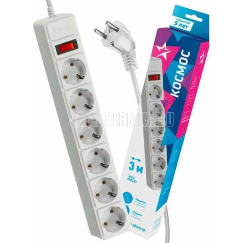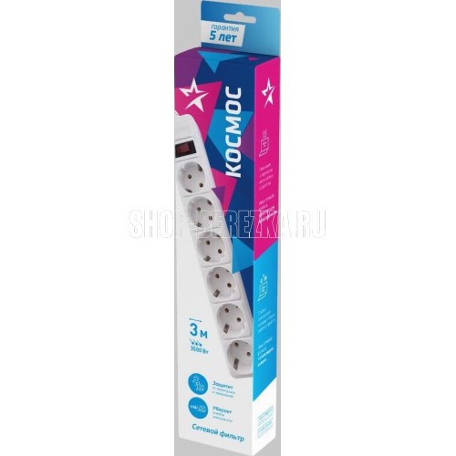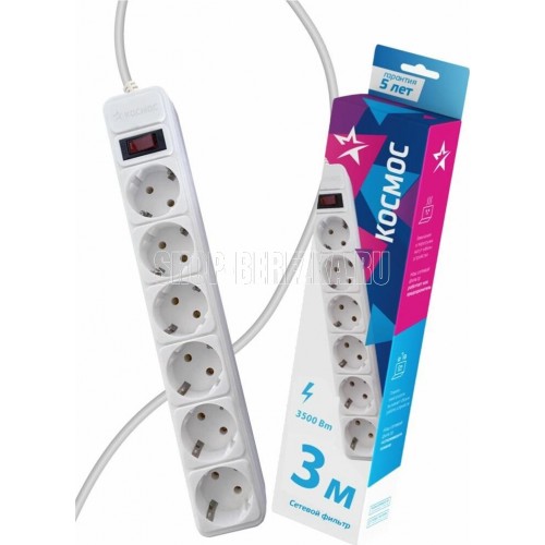 Сетевой фильтр Космос защищает Вашу технику от выхода из строя из-за "некачественного" тока: защита от многоразовых перегрузок и замыканий. Максимальная мощность 3500 Вт. Для одновременного и безопасного подключения девайсов всей семьи: от домашнего кинотеатра до домашнего офиса. 100% медный трехжильный кабель с сечением 1,00мм, пожаробезопасный корпус. индикатор сети. Номинальный ток 16А. 220В. предохранитель - биометаллический размыкатель. Цвет белый