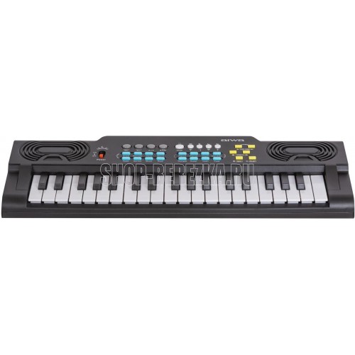 Детский электронный синтезатор, 37 Клавиш, Полифония 2 голоса, 8 тембров/8 Ритмов/4 ударных инструмента, 22 Демо мелодии, Запись и воспроизведение, Микрофон в комплекте, Источник питания: 4 батарейки типа АА (не входят в комплект) / 5В USB, Габариты 430x160x45 (мм)