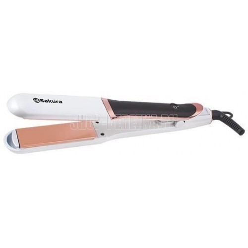 Выпрямитель Sakura SA-4527W Premium предназначен для выпрямления и укладки волос с помощью воздействия высокой температуры на структуру волос. Керамическое покрытие пластин защищает структуру волос от воздействия температуры. Особая форма пластин позволяет создавать локоны и креативные укладки. Основные характеристики: Тип: выпрямитель для волос Мощность: 50 Вт Температурные режимы: 5 LED дисплей: да Регулировка температуры: 150-230С Максимальная температура: 230С Кнопка вкл./выкл: да Индикатор работы: да
