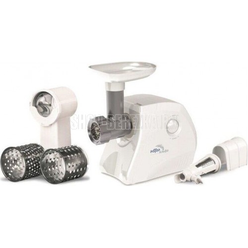 Мощность 1500Вт. Тип мясорубки шнековый. Производ-ть при пригот-и фарша не менее 35 кг/ч. Габариты: 245х151х213 мм. Комплектация: мясорубка + соковыжималка. РЕВЕРС.