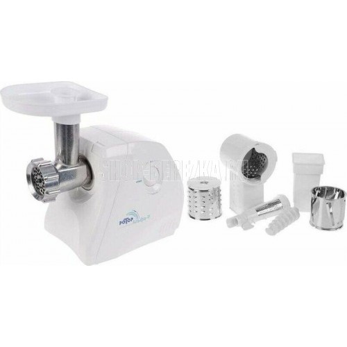 Мощность 1500Вт. Тип мясорубки шнековый. Производ-ть при пригот-и фарша не менее 35 кг/ч. Габариты: 245х151х213 мм. Комплектация: мясорубка + соковыжималка, малая овощерезка. РЕВЕРС.