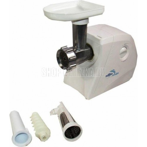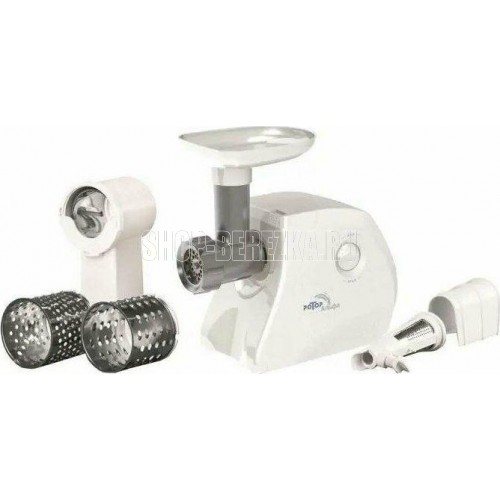 Мощность 1500Вт. Тип мясорубки шнековый. Производ-ть при пригот-и фарша не менее 35 кг/ч. Габариты: 245х151х213 мм. Комплектация: мясорубка + соковыжималка.