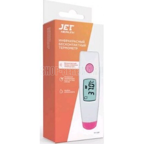 JET HEALTH TVT-200 розовый Термометр инфракрасный Температура хранения / транспортировки: -20 C - +50 С Диапазон измерения температуры тела: 32 С -43 С Диапазон измерения температуры поверхности предметов: 0 C -100 С Точность измерения: 0.1 С Ошибка измерения температуры тела: не более 0,2 С Ошибка измерения температуры предметов: не более 2% Дистанция измерения: 1 см для измерения температуры тела, 2 см для измерения температуры предметов. Автоматическое выключение: 30 сек Память последних 8 измерений температуры тела + 8 измерений температуры предметов Отображение температуры по шкале Цельсия Размер: 96*31*26 мм Вес: 49 г с батареей Питание: 1,5 В батарея AAA (LR03) Ресурс батареи: 5000 измерений.
