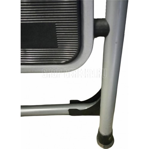 Стремянка оснащена удобной ВЫСОКОЙ ручкой С ПРОРЕЗИНЕНОЙ НАСАДКОЙ и резиновыми протвоскользящими насадками на ножках и ковриками на ступеньках высота ступеньки 71 см, вес 6,1кг
