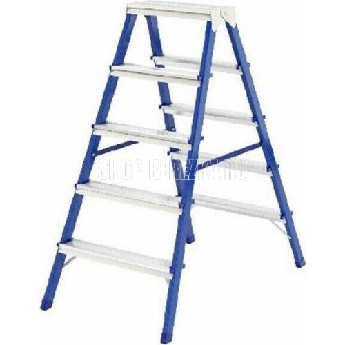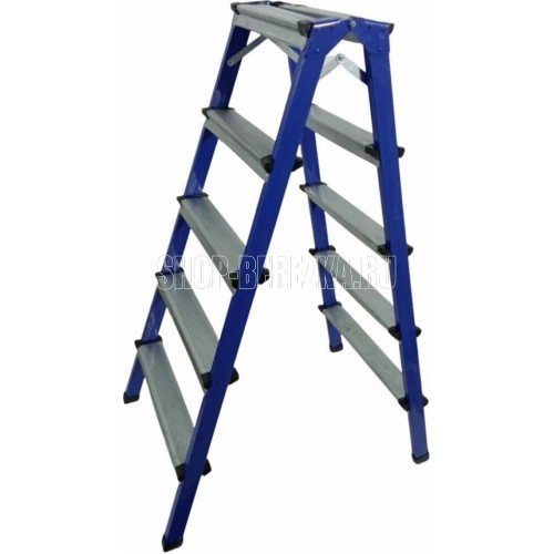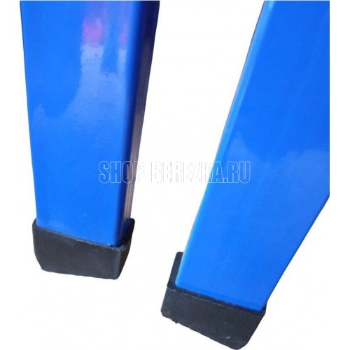 Cкладная стремянка с окрашенным порошковой эмалью стальным профилем оснащенным ступеньками с двух сторон и верхней рифленой противоскользящей площадкой которое можно использовать как сидение.страховочные ремни для дополнительной устойчивости и предотвращения складывания и пластиковые наконечники на ножках предотвращающие скольжение высота ступеньки 107,5 см габариты в сложенном виде 117х49х16 предельно допустимая нагрузка 150 кг с учетом динамической нагрузки. Цвет в ассортименте (синий, красный, серебристый)