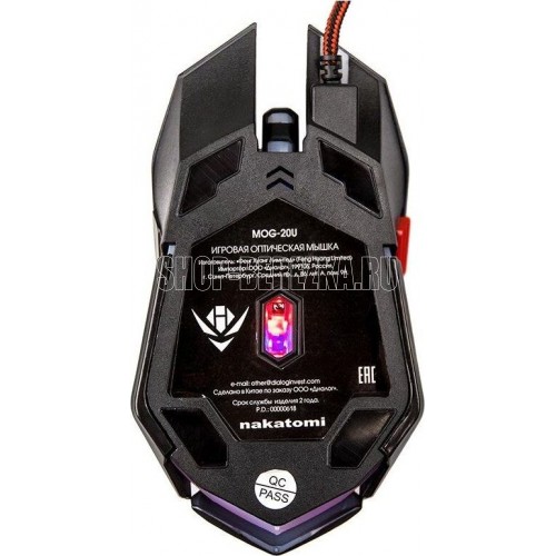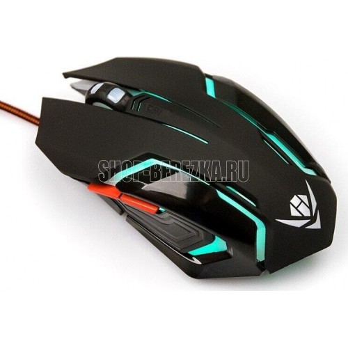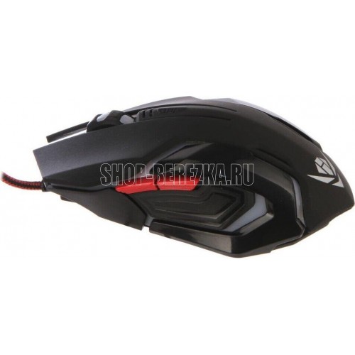 Интерфейс: USB, Тип: Оптическая (видимый диапазон), Разрешение: 800/1200/1600/ 2400, Динамически изменяемое разрешение, изменяется циклически кнопкой "DPI", Материал корпуса: матовый черный пластик, глянцевый чёрный пластик, верхняя панель с кнопками - пластик софт-тач. Вставки из полупрозрачного светлого пластика (подсветка). Красные дополнительные кнопки, Количество кнопок: 6, Прокрутка: вертикальная, полупрозрачный пластиковый ролик с резиновым ободом Особенности моделиКрупная асимметричная мышь с дополнительными кнопками управления под большим пальцем правой руки. Боковые кнопки "вперёд" и "назад" с коротким ходом, Длина кабеля, м: 1.5м текстильная оплётка.