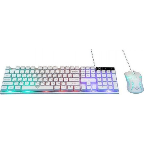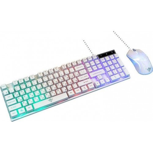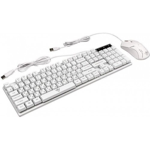 Игровой набор (клавиатура+мышь) , проводной, интерфейс USB; Количество клавиш: 104, Клавиши Windows, мультимедиа клавиши совмещённые с F-клавишами (активируются клавишей Fn); Мышь: оптическая, Количество кнопок - 4, колесо проктурки, Изменяемое разрешение: 1600/400/800/1200 dpi, Максимальное разрешение мыши в CPI1600, Длина кабеля: 1.5 м.