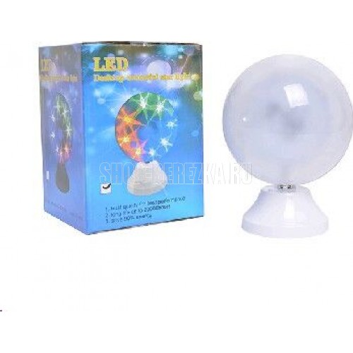 Диаметр изделия составляет 15см., цвет корпуса белый, для удобства расположения имеется подставка, цвет свечения мульти: синий, красный, зеленый, переливается "звездами" указанных цветов по всему диаметру шара, рабочая температура системы составляет 15-30°C, энергопотребление менее 5В, вес изделия- 310гр., питание на батарейках AA*3, в комплекте идет Световая система и инструкция полностью на русском языке.