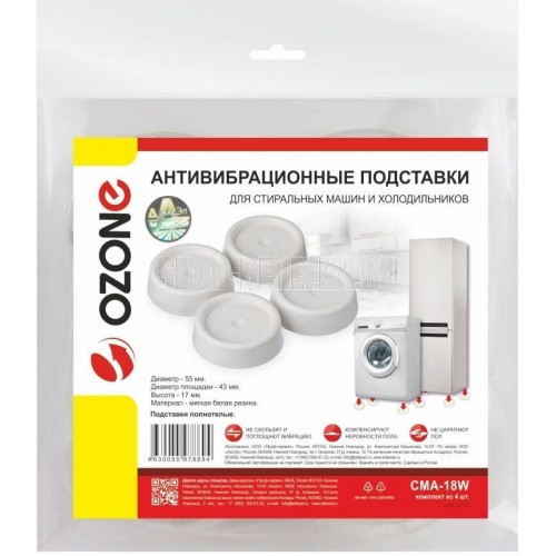 Антивибрационные подставки для стиральных машин и холодильников, 4 шт.; Цвет: белый; Диаметр установочного отверстия: 43 мм; Круглые, полнотелые