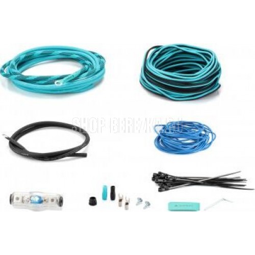 Рекомендуемая мощность усилителя до 800 Вт Силовой кабель плюсовой 8 AWG (8,8 мм2) ультраэластичная изоляция цвета циан в полиэстеровом рукаве (1,5 метра), обжат клеммой "кольцо" 8мм, медные проводники (OFC) - 5 метров Силовой кабель минусовой 8 AWG (8,8 мм2) ультраэластичная изоляция черного цвета, обжат клеммой "кольцо" 8 мм, медные проводники (OFC) - 1 метр Акустический кабель 16 AWG (1,5 мм2) ультраэластичная черная-циан изоляция, медные проводники (OFC) - 15 метров Управляющий кабель (remote) 18 AWG (0,75 мм2) синяя изоляция, медные проводники (OFC) - 5 метров Держатель предохранителя miniANL Латунь, покрытие никель, предохранитель miniANL 60 А в комплекте - 1 шт. Клемма силовая вилка 8 AWG, латунь, покрытие никель, черная - 1 шт., циан - 1 шт. Термоусадка для силового кабеля Для кабеля 8 AWG - 2 шт., циан Громмет (монтажная пластиковая втулка) Для кабеля 8 AWG - 1 шт. Саморез для монтажа держателя предохранителя 4,2 х 13 мм - 2 шт. Ключ шестигранный M3*20 х 50 мм - 1 шт.