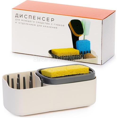 Кухонный диспенсер для моющего средства с губкой в комплекте и дополнительным отсеком для чистящей щётки - незаменимое решение на кухне. Этот удобный дозатор совмещает несколько полезных функций: хранение моющего средства, равномерная его подача, компактная подставка для губки и щётки. Дозатор для жидкого мыла избавит вас от лишних бутылок на рабочем месте, а мытьё посуды сделает гораздо более комфортным и быстрым. Равномерная подача моющего средства позволит сэкономить на его расходе. А органичный и стильный дизайн диспенсера украсит собой любую кухню. Отлично подойдёт в качестве подарка. Объем дозатора 0.3 л, объем отсека для хранения 0.52 л. Вес 0.369 кг Размеры изделия (ДхШхВ) 230х105х85 мм