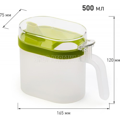 Дозатор для масла - уникальный аксессуар для дома, который необходим тем, кто обожает готовить. Емкость подходит для растительного, подсолнечного, оливкового масла, соевого соуса, для уксуса яблочного, винного, рисового, столового, бальзамического, а также для жидких соусов. Изготовлена из безопасных и прочных материалов. Крышка открывается легким нажатием. Емкость дозатора герметична и имеет оптимальный объем 500 мл. Вы можете с точной дозировкой добавлять необходимую приправу без разбрызгивания и протечек одной рукой. Многофункциональный дозатор для масла будет отличным помощником в приготовлении любимых блюд всех домочадцев. Вес 0.118 кг Размеры изделия (ДхШхВ) 165х75х120 мм Цвет микс