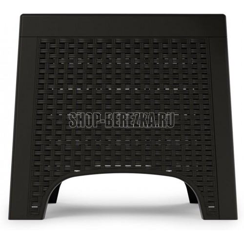 Мебель для отдыха из искусственного ротанга — это элегантность, удобство и эргономика. Столик используется не только на террасах или в беседках, но и на дворе. Столик выполнен из нетоскичного материала, который не подвержен деформации и устойчив к погодным условиям. Простота сборки и легкость содержания в чистоте — дополнительные преимущества этой мебели.