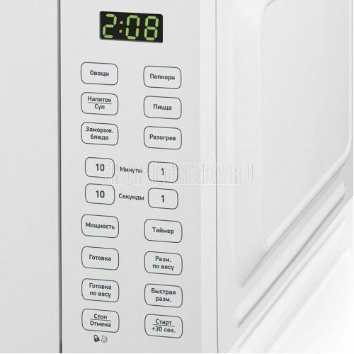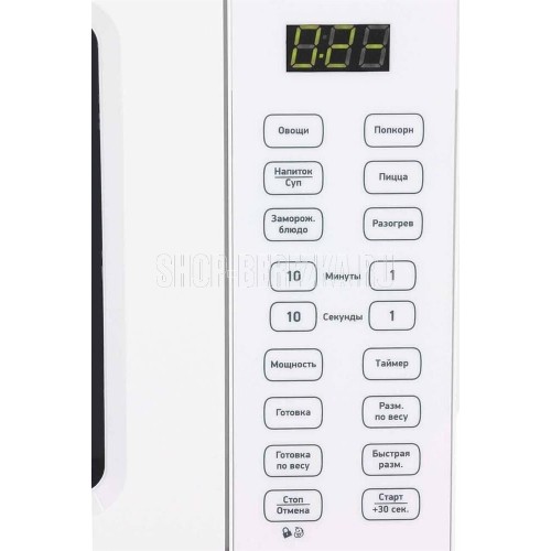 Объем камеры (л) 17 Тип управления электронный Мощность микроволн (Вт) 700 Диаметр поворотного стола (мм) 245 Материал поворотного стола стекло Внутреннее покрытие эмаль Тип открывания дверцы ручка Внутреннее освещение Да Таймер (мин) 99 Кол-во ступеней мощности (шт) 11 Микроволны Да Цифровой дисплей Да Светящиеся символы дисплея Да Класс электробезопасности 1 Энергопотребление в рабочем режиме (Вт) 1100 Входное напряжение питания (В/Гц) 220-230 В (50 Гц) Наличие заземляющего контакта на вилке Да Цвет корпуса белый Материал передней панели Пластик Отделка передней панели Пластик