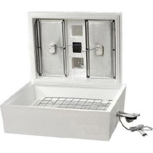 Мощность 50Вт. Вместимость яиц (куриных/гусиных, утиных) 70/40 шт. Переворот яиц автоматический. Терморегулятор аналоговый. Габаритные размеры 665Х550Х275мм.