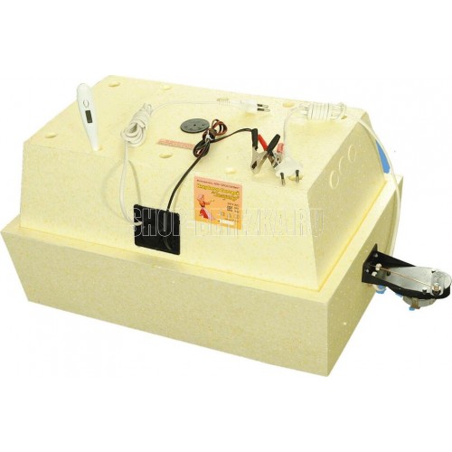 Габариты: 500х330х220 мм. Вес: до 5 кг. Возможность подключения к аккумулятору. Загрузка: на 28 яиц. Питание от сети: 220 В 50 Гц. мощность: 25 Вт. Автоматический переворот. Возможность питания от энергии горячей воды (80-90*С). С поддоном. Решетки в комплекте для куриных яиц.