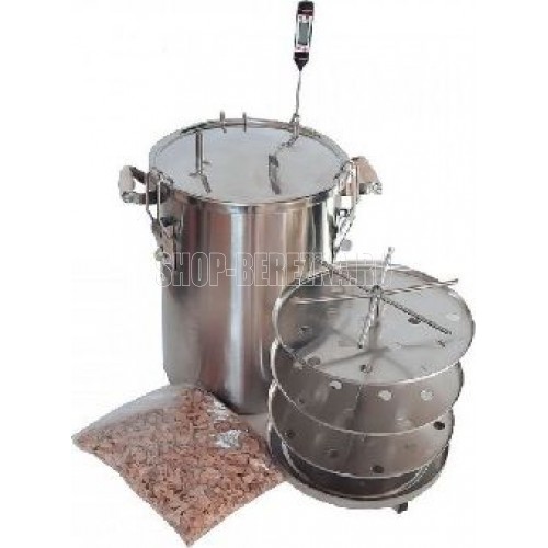 Большая коптильня горячего копчения. Нержавеющая сталь. 2 яруса решеток для копчения. Поддон для сбо..