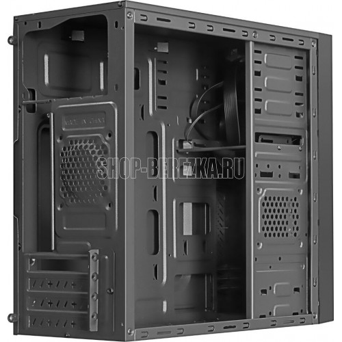Формат шасси mATX. Шасси чёрного цвета, компактный размер, классическая организация внутреннего пространства. Кромки шасси хорошо завальцованы. Кабельные каналы. Места крепления SSD.