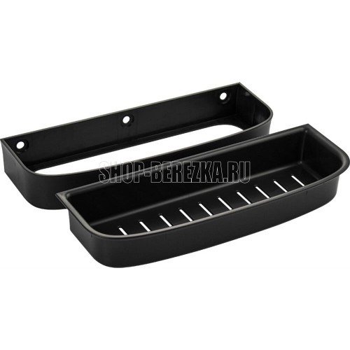 Полочка для принадлежностей прямая черная с литым дном, с черным пластиковым вкладышем, обладает высокими эксплуатационными характеристиками и подходит для использования дома, в общественных местах: отелях, ресторанах и пр. Изготовлена из прочного пластика АБС с матовым покрытием, которое придает безупречный вид и долговечность. Аксессуар не занимают много места, надежно фиксируется к стене при помощи набора креплений (входят в комплект) и служит удобным местом для хранения бытовых и косметических средств. Габаритные размеры: ширина 350 мм, длина края 125 мм, высота 55 мм. Вес - 0,55 кг, объём - 0,00416 м3