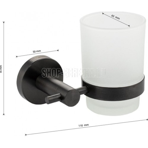 Стакан стеклянный с креплением к стене, правильной формы на основании. Изделие выполнено из матового стекла и металла. Материал изготовления — нержавеющая сталь. Имеет специальное графитовое, матовое покрытие, которое защищает изделие от влаги и придает ему безупречный стильный вид и долговечность. Идеально подойдет не только для ванной, но и для кухни. Изделие крепится к стене с помощью дюбелей и саморезов (входят в комплект). Размеры: высота стакана 95 мм, диаметр 65 мм, ширина 110 мм, диаметр посадочного седла 50 мм. Вес — 0,425 кг, объём — 0,00150 м3
