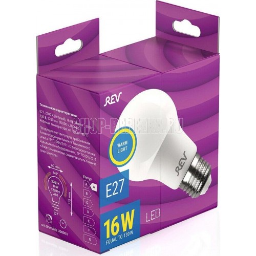 | ОБЩИЕ | Лампа REV E27 A60 16Вт 2700K |
