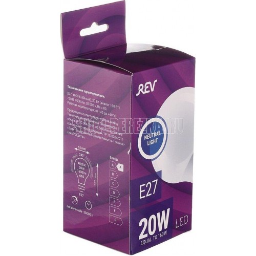 Размер А60 Кратность коробки 20 Степень защиты от пыли и влаги IP20 Мощность 20Вт Цветность 4000К Тип рассеивателя Матовый Напряжение 220В Цоколь Е27