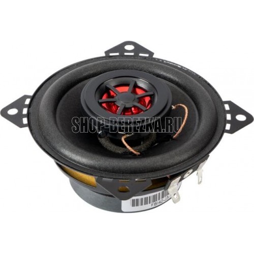 Акустическая система. Коаксиальная, 2-х полосная. Полипропиленовый диффузор (литьё под давлением) с прорезиненным подвесом. Стальная корзина. Номинальный диаметр: 4? (10 см). Номинальная мощность: 41 Вт Максимальная мощность: 91 Вт Диапазон частот: 115 Гц — 20 кГц Чувствительность: 87 дБ Сопротивление: 4 Ом Вес магнита: 3.5 Oz (100 гр.) Монтажная глубина: 44 мм