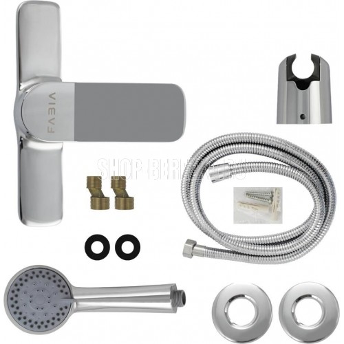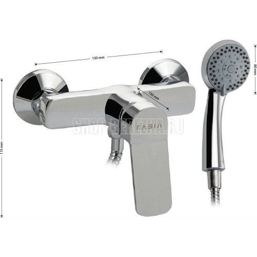 Смеситель хромированный в ванную / душевую комнату без излива, литой корпус, шаровый. Материал изготовления — ЦАМ (цинк-алюминий-медь). Картридж d = 35 мм, литая ручка, чашки и эксцентрики. Габаритные размеры: ширина 150 мм, высота корпуса 115 мм, глубина 150 мм, двухрежимная душевая лейка d = 80 мм, шланг 150 см. Вес - 1,27 кг, объём - 0,00398 м3. В комплекте паспорт, корпус, душевая лейка, шланг, кронштейн, комплект крепежа и прокладок.
