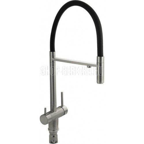MAGNUS 91118 Смеситель кухонный С-образный гибкий излив - ЧЁРНЫЙ , шаровый, с двойным выпуском воды для фильтра, из нержавеющей стали марка 304