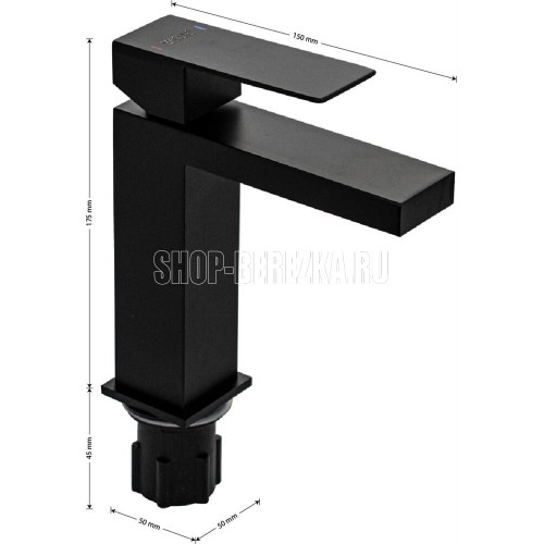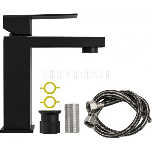 Смеситель для раковины, черный квадратный корпус, из нержавеющей стали марки 304, с длинным изливом, литая ручка, шаровый. Крепление резьба - гайка, картридж d = 35 мм. Аэратор для экономии воды. Такая модель может использоваться на домашней кухне, на даче, в медицинских учреждениях и общественных местах. Габаритные размеры: высота 175 мм, длина 150 мм, посадочноу седло 50*50 мм, длина резьбы 45 мм, длина подводки 450 мм. Вес - 1.05 кг, объём - 0.00248 м3. В комплекте паспорт, корпус, подводка 1/2, крепеж, набор прокладок.