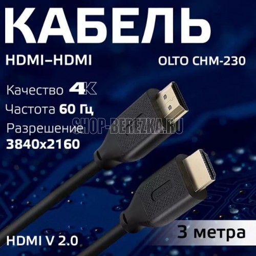 Тип кабеля: Аудио-видео кабель. Форма кабеля: Круглый. Разъем 1: HDMI (m). Разъем 2: HDMI (m). Поддержка технологий: 3D, ARC, CEC, HEC. Длина кабеля : 3 м. Материал оплетки: ПВХ. Проводник: Медь. Цвет: черный.