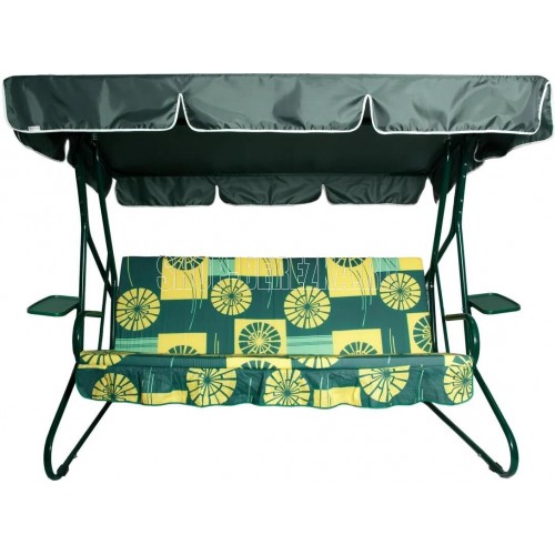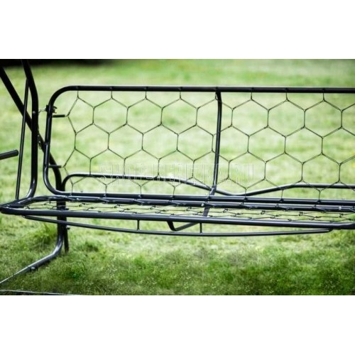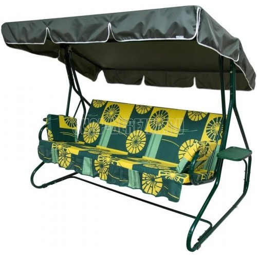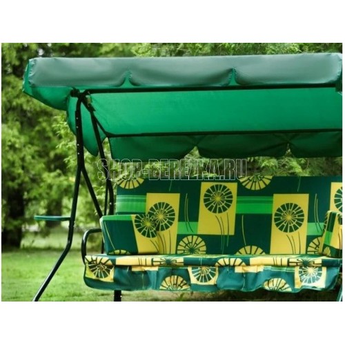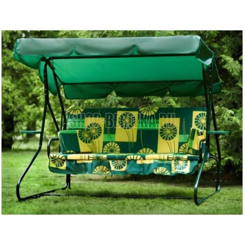 Габаритные размеры изделия (ДхШхВ) 2336х1543х1600 мм, Габаритные размеры сиденья, спинки и тента (ДхШ) размеры сиденья: 1706х540 мм, размеры спинки: 1706х540 мм, размер тканевого тента: 1450х1972 мм, Максимальная нагрузка 280 кг, Каркас: труба стальная Ф32х1,4мм; полимерное покрытие; полка - 2 шт. Мягкий элемент: ткань 45% п/э – 55% хлопок, плотность 108-111г/м2, наполнитель мягкого элемента (листовой поролон 50мм), наполнитель подушек (листовой поролон 50мм). Подушки – 2шт. Тент: Тент ткань с водоотталкивающей отделкой 100% п/э плотность 120г/м2. Регулировка спинки: осуществляется звеньями цепи на требуемый угол наклона, с возможностью фиксации в горизонтальном положении; Размеры упаковки: 620х240х1980 мм, Вес изделия: нетто 37,8 кг.