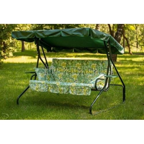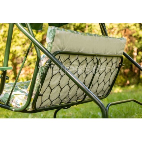 Максимальная нагрузка, кг: 280. Каркас: труба стальная O38х1,2мм; полимерное покрытие; полка - 2 шт. Мягкий элемент: ткань 45% п/э – 55% хлопок, плотность 108-111г/м2, наполнитель мягкого элемента 5см аэрофом + синтепон, основание спанбел. Увеличенная высота спинки. Декор мягкого элемента тафтингом. Наполнитель подушек синтепон. Подушки – 2шт. Тент: ткань с водоотталкивающей отделкой 100% п/э, плотность 80г/м2 Регулировка спинки: осуществляется звеньями цепи на требуемый угол наклона, с возможностью фиксации в разложенном положении.