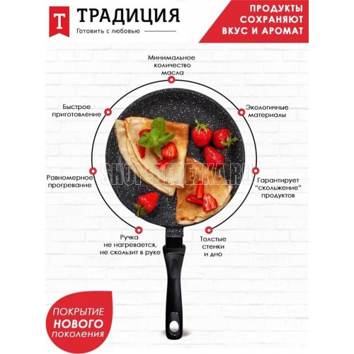 Тип сковорода блинная Материал алюминий Антипригарное покрытие есть Совместимость с индукционными пл..