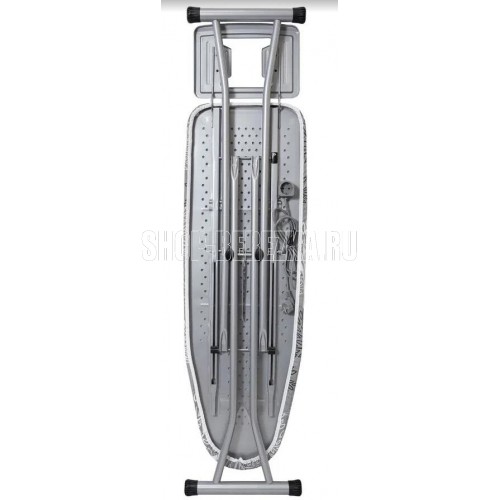 Рабочая поверхность 120х38см. Регулировка высоты 70-90см.Моноблочная стальная столешница. Электростатич. порошковая покраска. Подставка под утюг с антипригарными силикон. вставками.Усиленная конструкция ног. Вес 6,43кг.