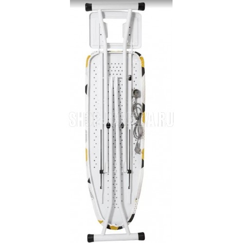 Доска гладильная DOGRULAR элона станет настоящей помощницей и позволит облегчить утомительный процесс глажки белья. Рабочая поверхность представляет собой перфорированный лист металла, обтянутый хлопковым чехлом с подкладкой из синтепона. Благодаря наличию отверстий в основании доски, пар свободно проходит, не задерживаясь на ткани. Доска длиной 120 см и шириной 38 см удобна для глажения постельного белья, скатерти или штор. Сбоку расположена удобная подставка для утюга, она достаточно широкая и специальная форма позволяет установить в двух положениях. Встроенный удлинитель позволяет устанавливать доску не рядом с розеткой. Прочный каркас из металлической трубы с полимерным покрытием, долго сохраняет свой внешний вид. Ножки оснащены пластиковыми накладками, защищающими напольное покрытие от повреждений и скольжения.