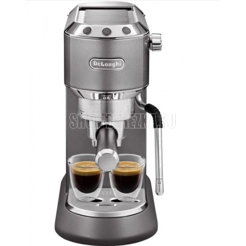 Тип: рожковая; Управление: электронное; Мощность: 1300 Вт; Емкость резервуара для воды: 1.1 л; Давление помпы: 15 бар; Настройки: регулировка объема порции; Особенности: подогрев чашек, капучинатор; Материал корпуса: пластик, металл; Цвет: серый; Тип используемого кофе: молотый;