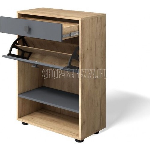 Обувница с полкой МЛ-4 это модуль прихожей Мини-Лайт. Обуница имеет один откидной ящик для обуви и один верхний выдвижной ящик. В нижней части обунице располагается открытая полка.Все модули прихожей Мини-Лайт можно приобрести отдельно и составить собственную композицию прихожей. Размер Ш х Г х В 624х316х897