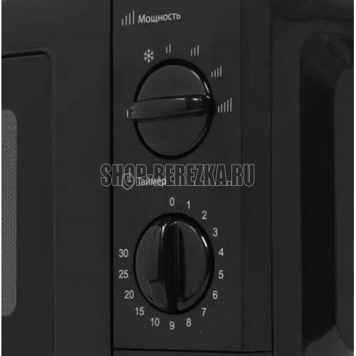 Печь микроволновая, Объем 20 литров, Мощность 700 ватт, Механическое управление, 5 уровней мощности, Таймер, Диаметр поворотного стола 245 мм, Функция разморозки, Цвет корпуса: Черный