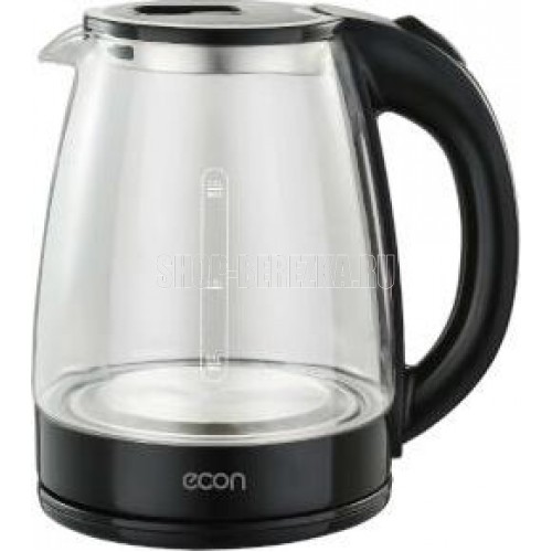 Чайник стеклянный, дисковый нагревательный элемент, емкость 1,8 литра, мощность 1500 Вт, подсветка при включении, автоматическое отключение при закипании, защита от включения без воды, цвет корпуса: черный