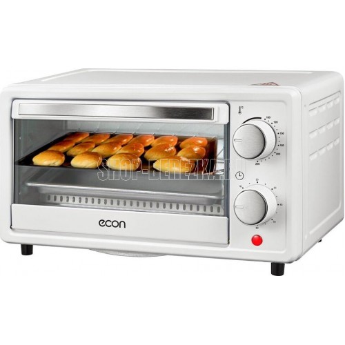 Электропечь, мощность 900 вт, объем камеры 10 литров, механическое управление, температура 100-250 градусов, таймер до 60 минут, индикация включения, цвет корпуса белый