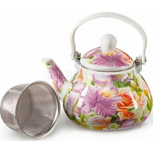 EM-131X1/8 Чайник эмалированный с фильтром из нерж.стали "Орхидея" 1,3л Параметры Объем 1,3 л Описание Чайник эмалированный с фильтром из нержавеющей стали Трехслойное внутреннее и внешнее эмалевое покрытие, устойчивое к воздействию пищевых кислот Съемный фильтр из нержавеющей стали Зачерненное дно с повышенной термоотдачей Эргономичная подвижная ручка Может быть использован на всех типах кухонных плит: электрических, газовых, керамических, индукционных Подходит для мытья в посудомоечной машине